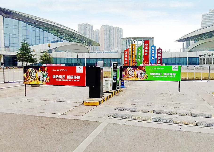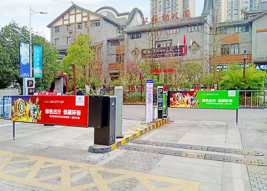 D203卡布燈箱廣告道閘+P815SP車牌識別——四川宜賓南溪文體中心停車場4進(jìn)4出案例