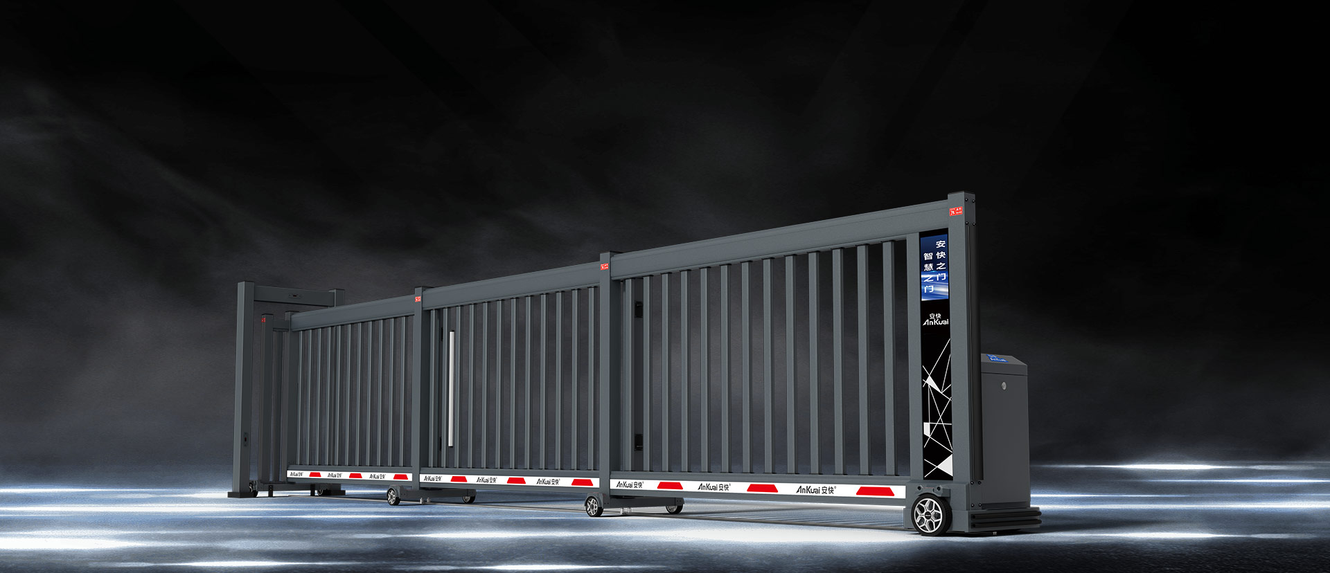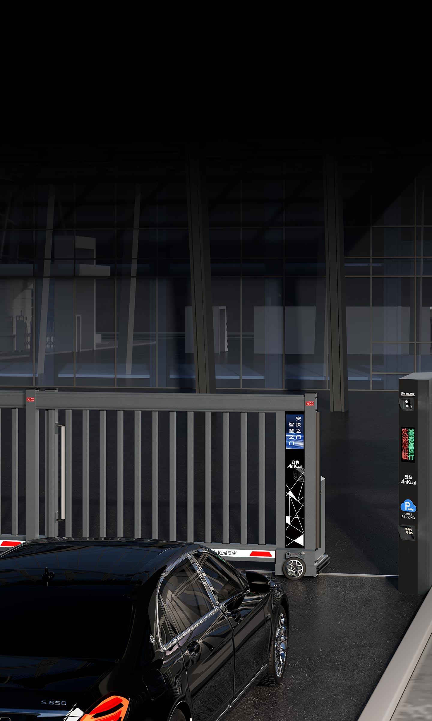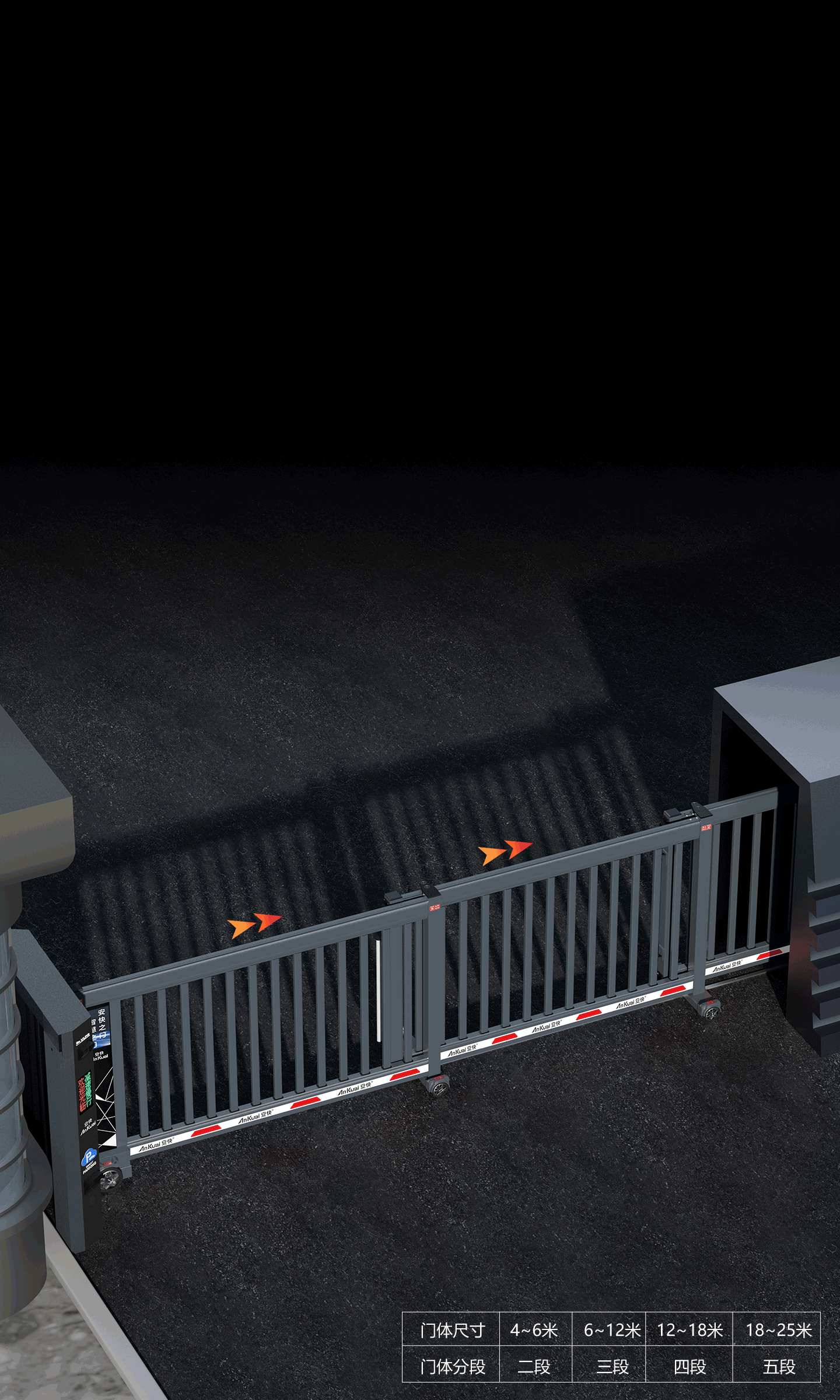 上/下橫梁結(jié)構(gòu)具有設(shè)計專利,上橫梁一體式定位導(dǎo)軌設(shè)計,隱藏循環(huán)式走線, 防雨雪、沙塵,惡劣環(huán)境下正常運行,下橫梁底部滑軌結(jié)構(gòu)更穩(wěn)更強(qiáng);適用于物業(yè)社區(qū)、園區(qū)、廠區(qū)、酒店、校園、企事業(yè)單位。